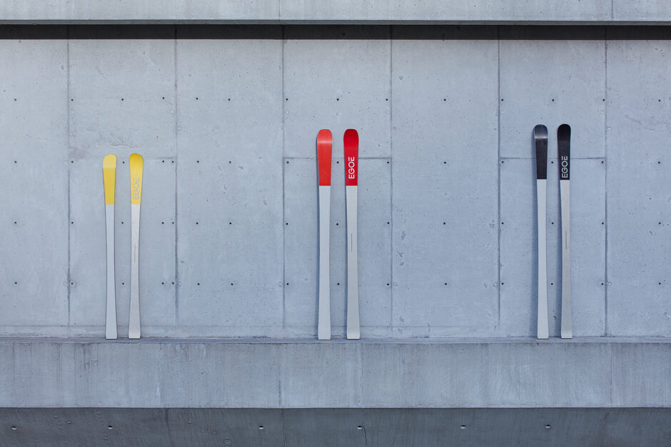 Studio 519 stands behind design of Egoe Dip skis. They look simple but believe it or not we spent a lot of time finding the right composition of the ski core and also appropriate visual appearance. The result is really minimalistic. We were also considering the way how to present the final product and came up with an idea to interconnect the skis with sophisticated architecture. Therefore we asked architect Robert Konieczny of Katowice (KWK Promes) to combine his iconic weekend house Ark located in the Silesian Beskids and the collection of our skis Dip.