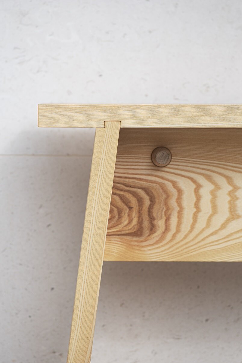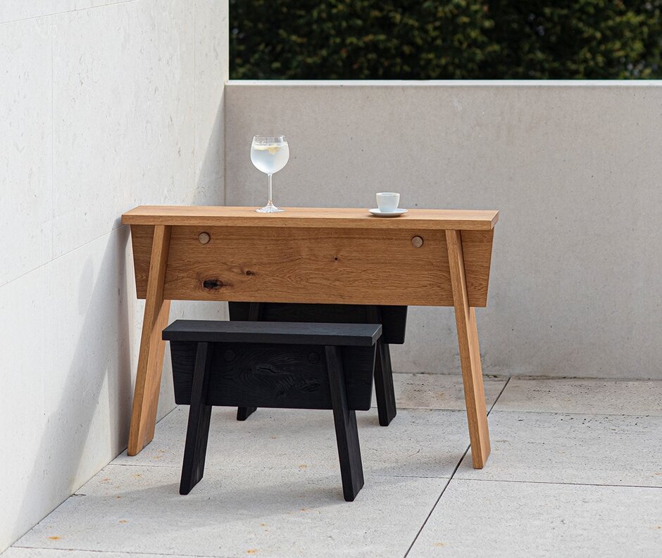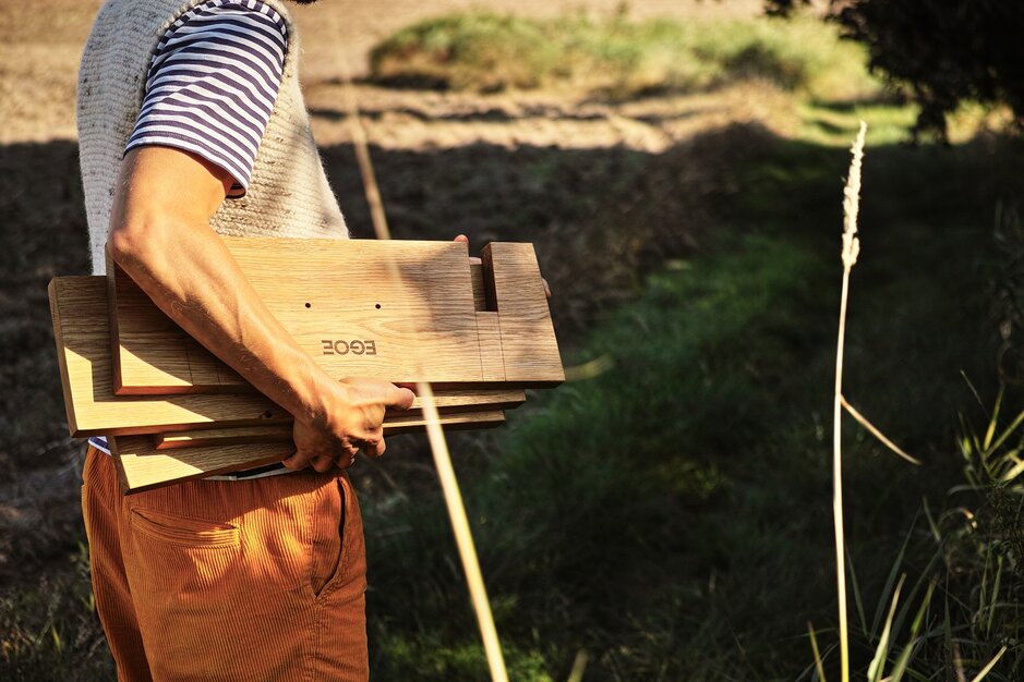 The story of its birth is fascinating. Our designer was building outdoor seating spots in nature using furniture from our other series when gradually a feeling became urgent and pronounced: to not bring into the woods anything that would not disintegrate there without a trace. What followed were months of learning and traditional woodwork courses. Then, in the Beskydy Mountains, the prototype of today’s Štok was born. The designer was to travel back home to Prague by train. He decided to make a piece of furniture that could be disassembled when needed, transported easily and put together again manually. Wood without a single nail or glue. Its simple, humble shape won our hearts immediately. It brings our seating furniture projects back to basics: Štok refers to "štokrle," historically a milking stool.