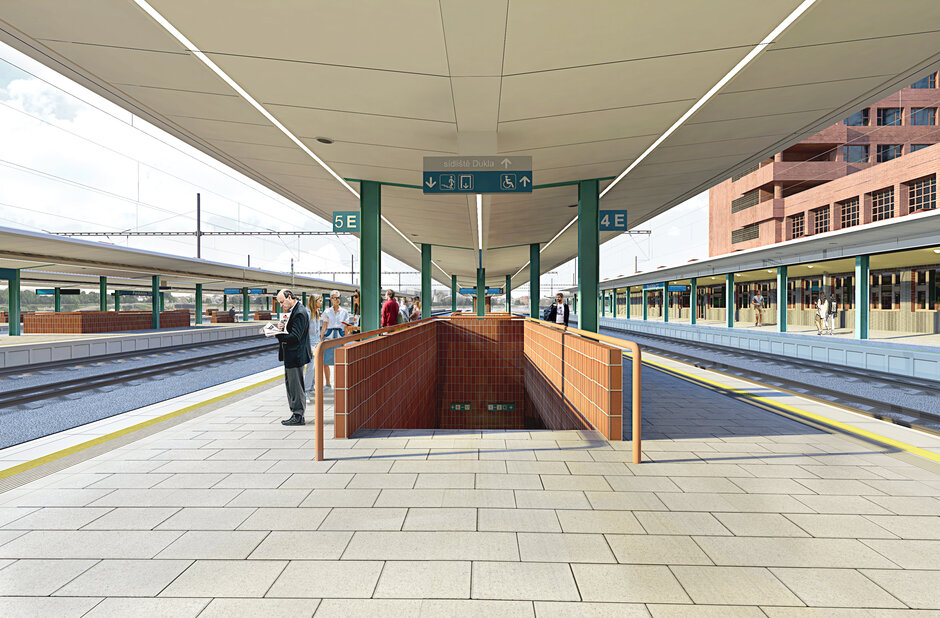 Na prvním nástupišti, které přiléhá k výpravní budově, se nově objeví prosklený pás, díky kterému bude prostor tohoto nástupiště výrazně prosvětlen.